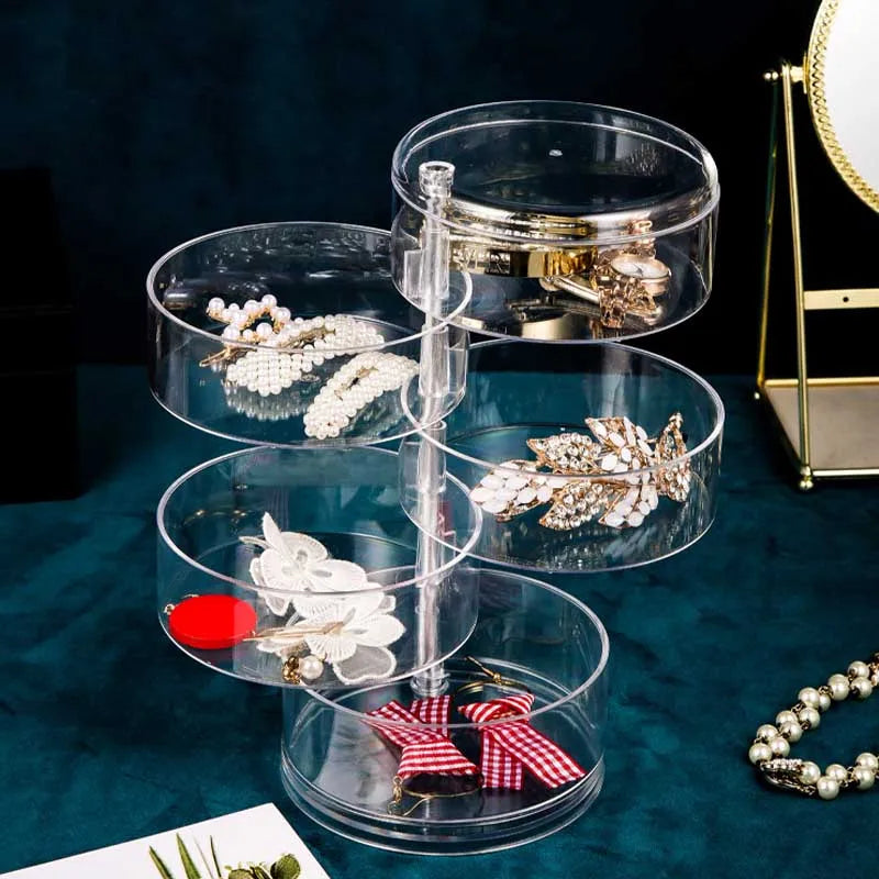علبة مجوهرات بلاستيكية شفافة دوّارة