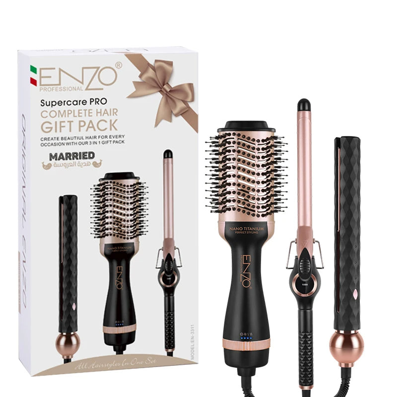 Transform your hair routine with the ENZO EN-3311 3-in-1 Hot Air Brush, a powerful styling tool that combines drying, brushing, and straightening in one. Designed to save time and deliver salon-like results at home, this device dries and styles your hair simultaneously leaving it smooth, shiny, and full of volume. With multiple heat settings, it adapts to all hair types while reducing frizz and enhancing manageability. Its lightweight and ergonomic design ensures comfort and control, making it perfect for everyday use or special styling needs.'