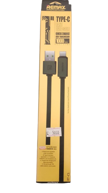 Stay powered up with the Remax Type-C Charging Cable, designed for fast, reliable, and hassle-free charging. With a generous 1000mm length, this cable offers flexibility whether you're at home, at work, or on the go. Built with durable, high-quality materials, it withstands daily wear and tear while delivering efficient charging for your smartphones, tablets, or laptops. Sleek and sturdy, it’s the ideal choice for everyday convenience and long-term use.